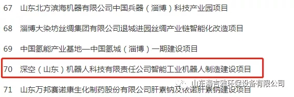 海吉雅環保與上海迪貝機器人科技有限公司共同投資深空(山東)機器人科技有限責任公司的智能工業機器人制造項目,同時列入省重大項目名單。