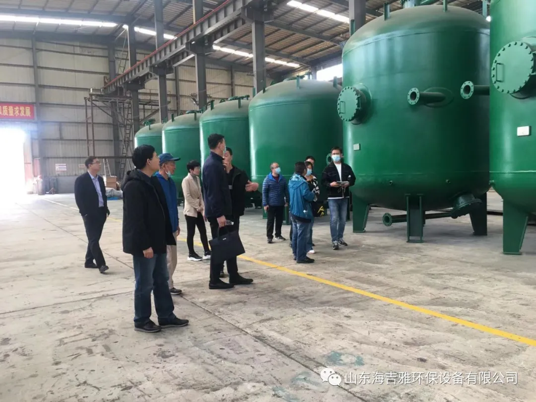 2021年4月6號勝利油田現河采油廠、東辛采油廠、河口采油廠及勝利油田物資管理配送中心等單位相關領導及專家蒞臨海吉雅環保考察指導工作。