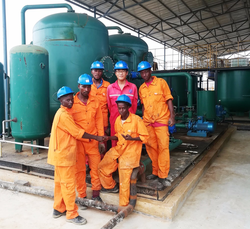 剛果布佳柔油田項目是公司第一個海外投產運營的項目,公司領導給予高度重視,由總工程師親自帶隊設計、裝配,并派遣公司骨干人員親赴剛果進行設備安裝的技術指導。
