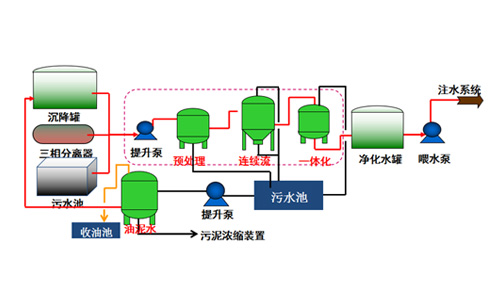 該工藝在來水礦化度≤10000mg/L,含油≤150mg/L,懸浮物含量≤150mg/L的情況下,處理后的水質滿足含油≤5mg/L,懸浮物含量≤1mg/L,粒徑中值≤1μm。該裝置能有效處理各種稠油污水、注聚污水、注凝膠污水、低溫高濁污水等(指標以現場測試為準,含壓裂液…