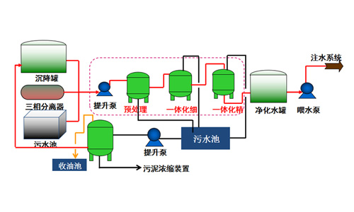 該工藝在來水礦化度≤5000mg/L,含油≤100mg/L,懸浮物含量≤30mg/L的情況下,處理后的水質滿足含油≤6mg/L,懸浮物含量≤2mg/L,粒徑中值≤1.5μm。該裝置能有效處理各種稠油污水、注聚污水、注凝膠污水、低溫高濁污水等(指標以現場測試為準,含壓裂液…